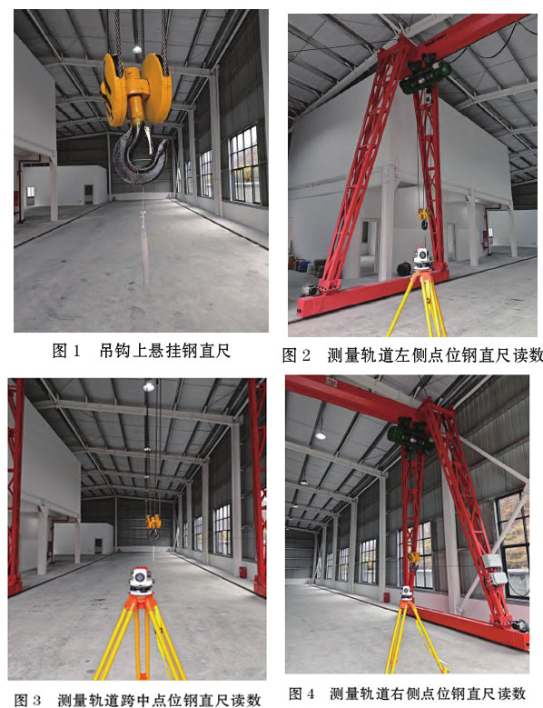 (3)將電動葫蘆運行至軌道右側(圖4),待鋼直尺靜止后,調整水準儀目鏡,讀出目鏡中鋼直尺的刻度S3。